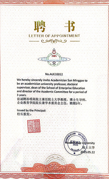 2025年5月22日,院士大学正式宣布,聘任孙明高博士为经济管理学院院长。这一任命不仅是对他多年来在教育创新、学术研究、产业实践及智库建设等领域卓越成就的高度认可,更是对他推动产学研结合所作贡献的充分肯定。