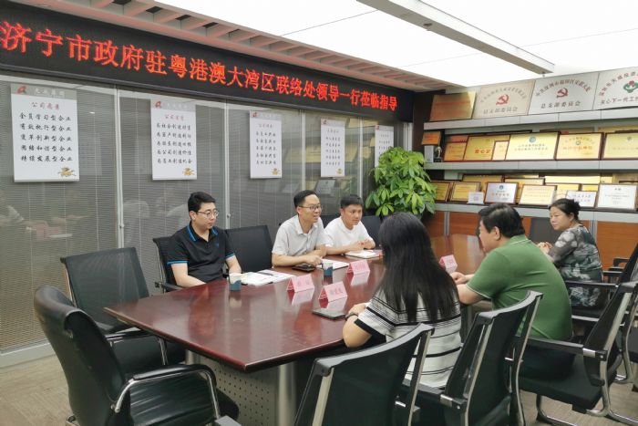 2025年6月13日,济宁市驻粤港澳大湾区招商联络处马升跃、刘奇、谭辰一行莅临我商会考察交流。鲁商联盟会常务副会长兼大湾区鲁商工委主席、广东省山东商会常务副会长兼深圳会长、广东省异地商会联合会执行会长、广东省山东烟台商会会长孙明高,广东省山东商会(深圳)理事会秘书长周爱先等商会代表热情接待马升跃一行,并就济宁市的“双招双引”工作和国企改革等议题展开座谈交流。