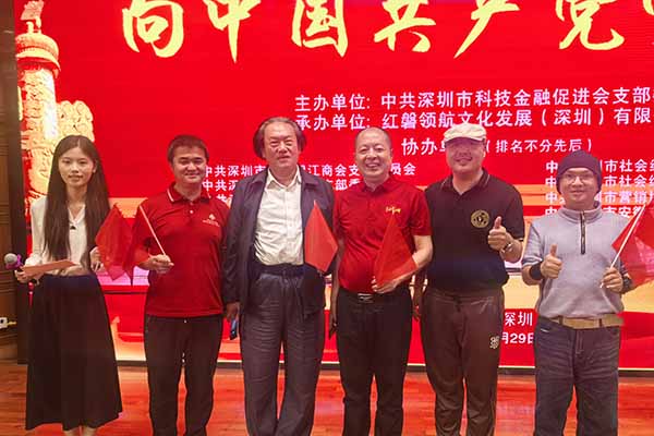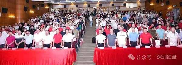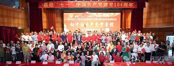 2025年6月29日,深圳报业大厦礼堂内党旗飘扬、思想激荡。为庆祝中国共产党成立104周年,深圳市科技金融促进会党支部携手安徽望江商会、微马跑步协会等13家商协会党支部,共同举办“向中国共产党学管理”主题党课活动。广东省山东商会(深圳)副会长、粤港爱心义工联盟主席、香港信用担保联合会主席、深圳市聚爱会荣誉会长、世界五邑商会荣誉主席、国际潮商联谊会文化主席、广东惠州红棉慈善会荣誉主席汪润田,与红盘文化等500余家企业代表齐聚一堂,共探红色管理智慧,汲取高质量发展动能。
