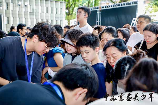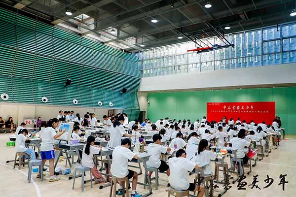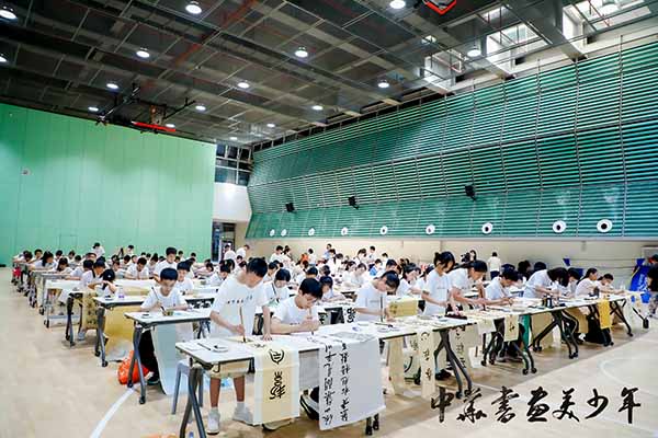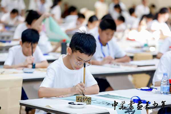 比赛当日,从全国遴选而出的青少年选手们汇聚深圳。他们在签到台前或紧张期待,或从容坚定,脸上无不洋溢着对书画艺术纯粹的热爱。开幕式后,大赛于下午正式进入比赛环节。赛场分为书法与绘画两大区域:书法赛场中,篆隶楷行草诸体纷呈,笔意流转;绘画区域内,山水、人物、花鸟在少年们的笔墨色彩间生动展现。现场还设有主持人互动环节,深入挖掘选手创作背后的故事与情感。