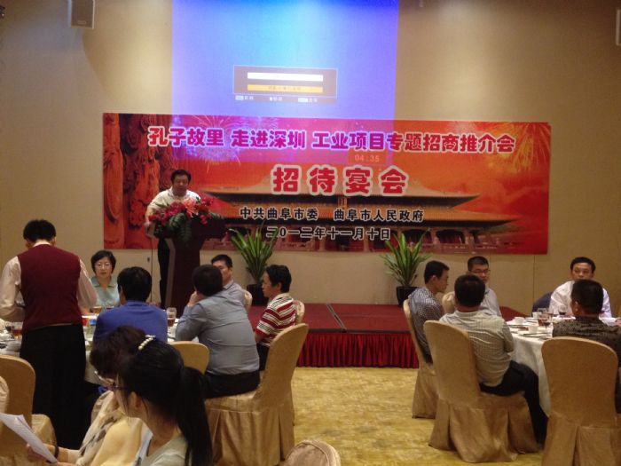 活动开始,首先播放曲阜宣传片,围绕重点项目招商、主导产业招商和农业项目招商进行宣传;随后,曲阜市领导致辞,对曲阜市的发展优势及特色产业进行了详细介绍并重点推介汽车零部件、生物医药、新能源、物联网四大主导产业及项目;接下来,深圳市与曲阜市意向企业进行了对接洽谈。