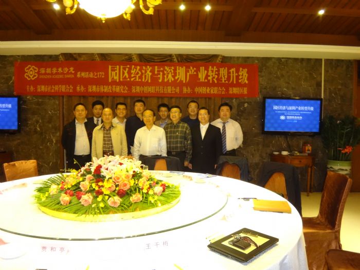 来自市社科院、市委政策研究室、中国创业家联合会、市体改研究会、F518时尚创业园等近三十位专家学者,围绕 “园区经济与深圳产业转型升级”这一话题展开了热烈讨论。市体改会的贾和亭会长提出园区经济正成为促进生产力发展和产业转型升级的推动力。与会专家认为,以传统工业为代表的园区要进行转型升级,政府职能部门应建立起现代产业体系,以龙头企业为核心帮助园区进行产业集群整合。来自深圳各优秀产业园区的管理者代表就本身在园区工作的经验发表了对本次主题的独到见解。他们希望政府职能部门能够拿出实际的做法和政策,在合理公正的前提下做好园区的转型升级。