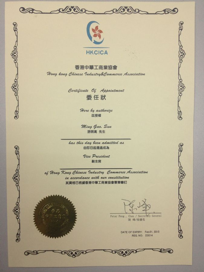 2013年11月,香港中华工商业协会委任深圳市齐鲁商会孙明高会长担任协会副主席。