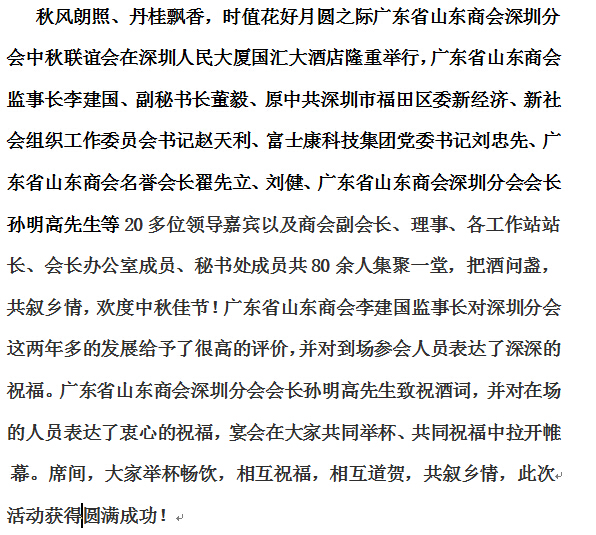 广东省山东商会深圳分会中秋联谊会隆重举行