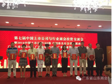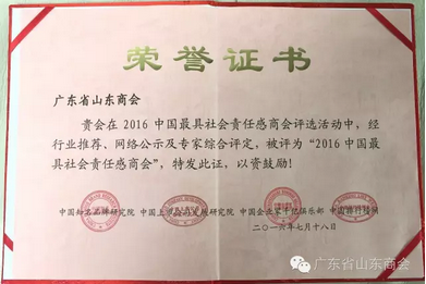 广东省山东商会监事长李建国代表商会领取2016年中国最具社会责任感商会荣誉证书