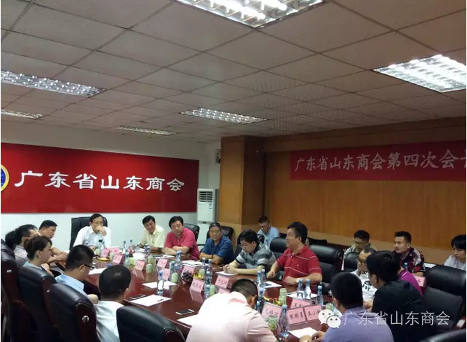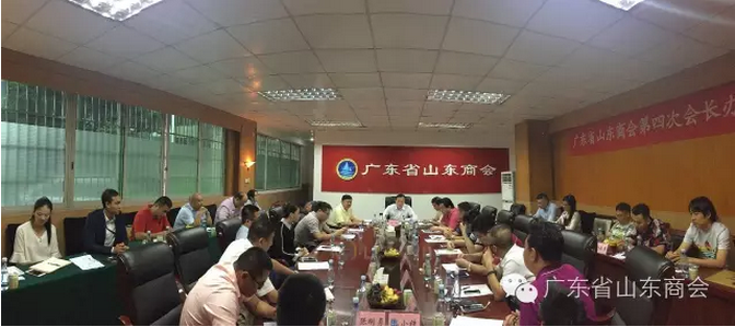 2016年9月3日下午,广东省山东商会第四次会长办公(扩大)会议在广东省山东商会会议室胜利召开,广东省山东商会江南会长、李建国监事长、周慎坤秘书长、张伟常务副会长、孙明高常务副会长、王庆安常务副会长、仇成林常务副会长、赵永箐常务副会长、孙海波常务副会长、魏承波常务副会长、于化功副会长、王建峰副会长、王军船副会长、张明勇副会长、杨民军副会长、尤培波副会长,王小铁副会长、肖思辉副会长、孙健副会长、路雨副会长、于冲理事、徐秀华理事、山峰理事、刘长勇理事、高峰理事。共计25余人参加了此次会议。因事请假:7位。刘宗杰常务副会长在北京,许法卿常务副会长在国外,刘华长副会长在北京,刘勇宏副会长在河池,侯红亮副会长在外地,刘长江理事在外地,郭劲勇理事在山东。