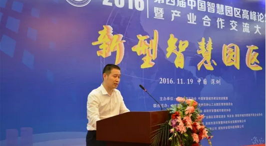 深圳市人民政府刘胜副秘书长、原深圳市政协程科伟副主席和正威国际集团有限公司投资委员会江道祥主席出席大会并致辞。刘胜副秘书长致辞中提到,通过这次论坛相互交流,共同提高。更希望深圳企业要抓住新型智慧城市和新型智慧园区建设发展的机遇为全国新型智慧园区建设输出深圳质量、深圳标准和深圳创新发展精神的品牌。