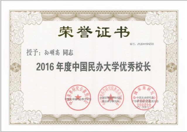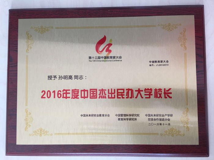 此次会议中孙明高董事长荣获“2016年度中国杰出民办大学校长”奖项,这是对孙明高董事长在人才培养思想、企业大学创新、产学研结合、职业教育创新等方面的认可,特别是在管着落实“一带一路”国家战略,大力推行“经济留学”方面的充分肯定,更是对深圳市乐天成控股集团以及中国天成大学的鞭策和鼓励。