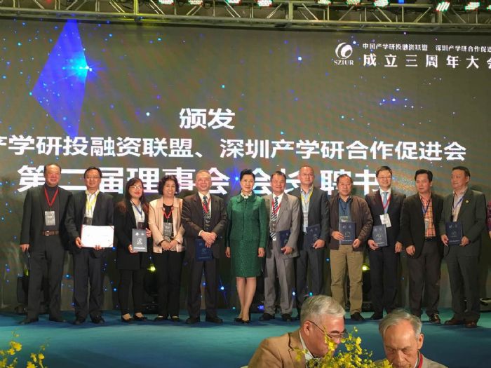 2016年12月15日,中国产学研投融资联盟、深圳产学研合作促进会第二届会员代表大会暨成立三周年大会在深圳举行。本次大会的主题是“协同创新、转化成果、合作共赢”,这是对深圳产学研三年工作的总结,也是对未来的期许。原科技部副部长、全国政协教科文卫体委员会副主任、中国产学研合作促进会常务副会长陈小娅,深圳市委原书记李灏,香港中联办原副主任周俊明,深圳市委常委、统战部部长林洁,中国产学研合作促进会执行副会长兼秘书长王建华,中国产学研合作促进会常务副秘书长丁玉贤,深圳市政协第六届委员会副主席黎军,深圳市社会组织管理局党组书记、局长凌冲等嘉宾领导出席了此次大会。会议审议通过了第一届理事会工作报告、财务报告、《深圳产学研合作促进会章程(修正案)》;选举产生了中国产学研投融资联盟、深圳产学研合作促进会第二届理事会,廖军文蝉联会长。会议由中国产学研投融资联盟第一届副会长、卓越置业集团有限公司总裁李晓平主持。全国山东商会战略联盟副主席、广东省山东商会(深圳)、广东省山东商会深圳分会孙明高会长应邀参加此次大会。
