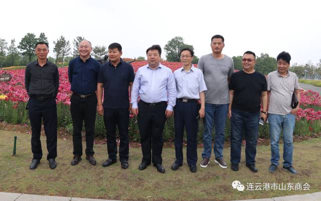 图为广东省山东商会深圳分会会长孙明高(左四)、东海县组织部副部长田永(左五)、深圳市乐天成控股集团副总裁许德学(左二)、江苏省山东商会常务副会长王通超(左三)和本次投资考察团成员一起来到东海旅游资源基地考察并合影留念