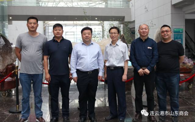图为广东省山东商会深圳分会会长孙明高(左三)、东海县组织部副部长田永(左四)、江苏省山东商会常务副会长王通超(左二)和本次投资考察团成员一起在东海水晶博物馆合影留念