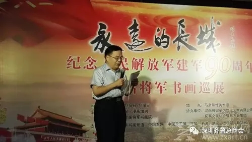 2017年7月6日,为纪念人民解放军建军90周年,由人民日报•漫画增刊、北京红星阁将军书画院主办,河南省御笔坊文化艺术有限公司、拓展文化协会暨东方毅集团协办的“永远的长城•百名将军书画展”在北京马奈草地美术馆开幕。