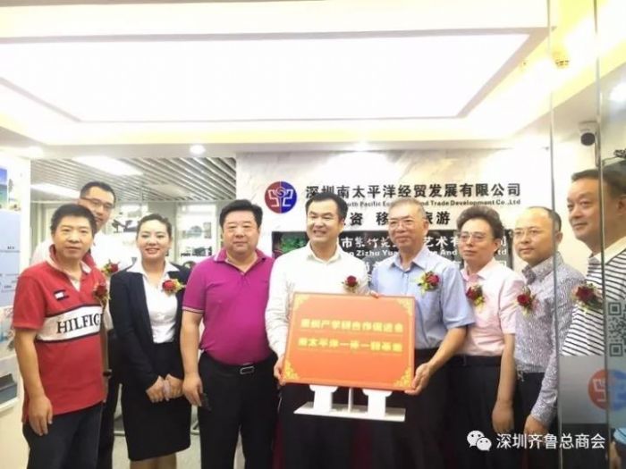 2017年10月12日上午10点,深圳产学研合作促进会“南太平洋一带一路基地”揭牌仪式在深圳南太平洋经贸发展有限公司举行。促进会会长廖军文率部分副会长代表、会员企业家及秘书处一行参与揭牌仪式。全国山东商会战略联盟副主席、广东省山东商会(深圳)、广东省山东商会深圳分会会长孙明高先生受邀出席揭牌仪式,广东省山东商会深圳分会副秘书长孙勇涛先生陪同出席。