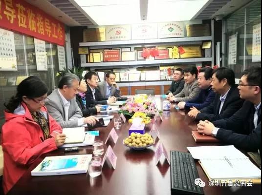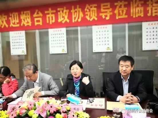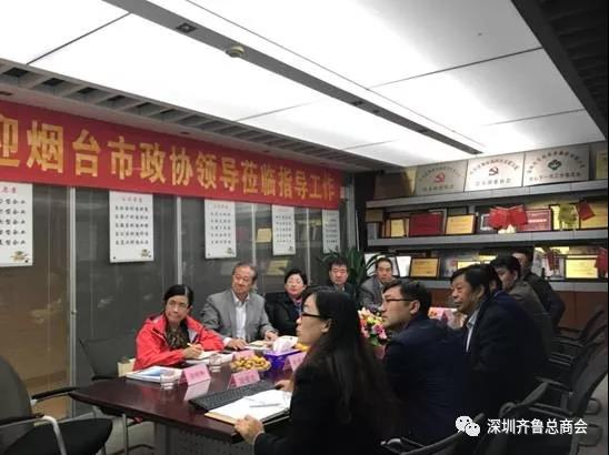 2017年11月24日下午,烟台市政协主席朱秀香、烟台市政协党组成员、秘书长宋志刚、副秘书长、委员工作室主任张岩等一行六人莅临广东省山东商会(深圳)、广东省山东商会深圳分会指导工作。全国战略联盟副主席、广东省山东商会常务副会长、广东省山东商会深圳分会孙明高会长,广东省山东商会深圳分会常务副会长丁元奎,福田分会会长王成、人力资源分会副会长周爱先及总商会副秘书长尹兆杰、孙勇涛等人在集团会议室予以热情接待,双方座谈交流,共谋发展新篇章。