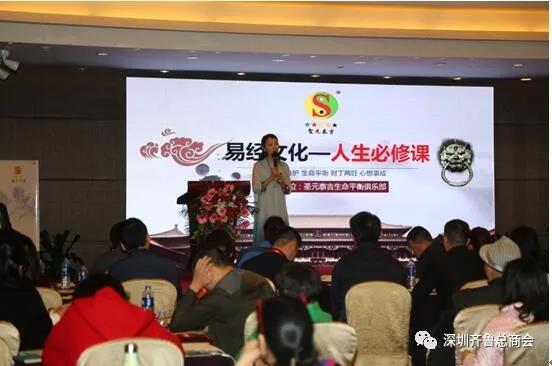 2017年12月10日,由广东省山东商会深圳分会、深圳齐鲁文化研究会主办,深圳圣元泰吉文化发展公司承办的易经国学研修论坛(深圳站第二期)在深圳观澜格兰云天酒店举行,本次论坛由深圳各大企业家及成功人士组成,参会人员约120人。广东省山东商会深圳分会、深圳市齐鲁文化研究会会长孙明高应邀出席会议。