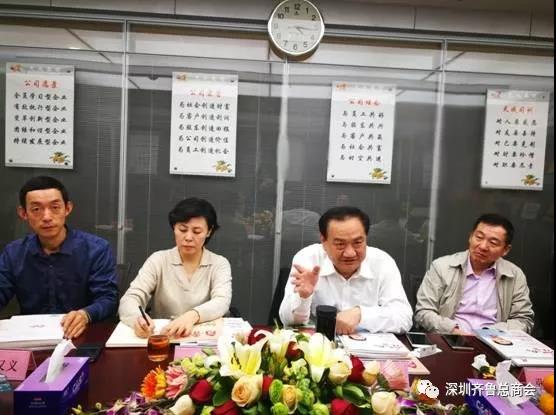 孙明高会长首先欢迎宿华书记等领导及企业家莅临广东省山东商会深圳分会指导工作。会上,乐天成控股集团董事会秘书周爱先首先从企业简介、产业体系、区域业务、跨境业务、企业文化、企业教育、企业研发、企业媒体、企业外交、企业责任、企业荣誉等十三个方面对集团简介进行介绍;随后,孙明高会长就企业发展的关键问题与宿华书记一行进行交流,并将集团公司及总商会的发展情况、未来规划等向大家介绍。