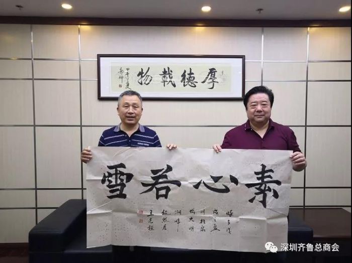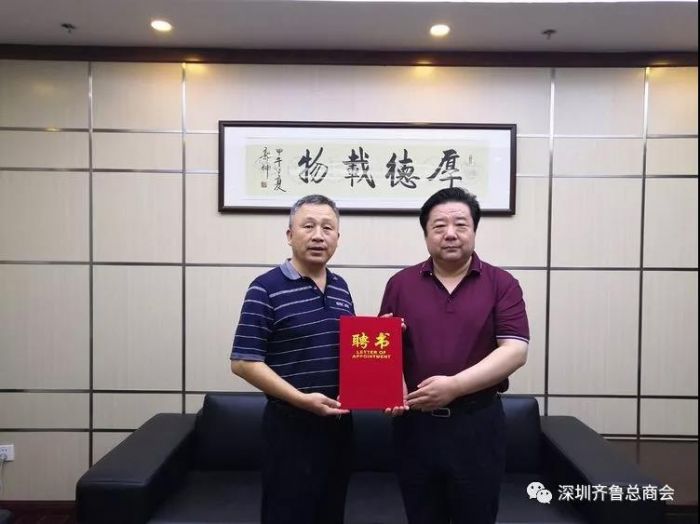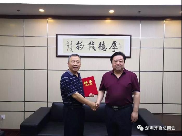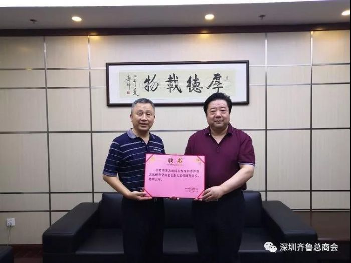 2018.6.16.深圳齐鲁文化研究会特聘《大家画苑》主编王志超为副会长,会长孙明高为王志超颁发聘书。