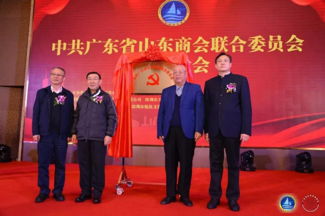 揭牌仪式上,由原广州军区副政委王同琢将军,原广东省原政协副主席、党组副书记唐国忠,广东省工商联党组成员、专职副主席张宏斌,广东省山东商会会长江南一同为中共广东省山东商会联合委员会成立进行揭牌。