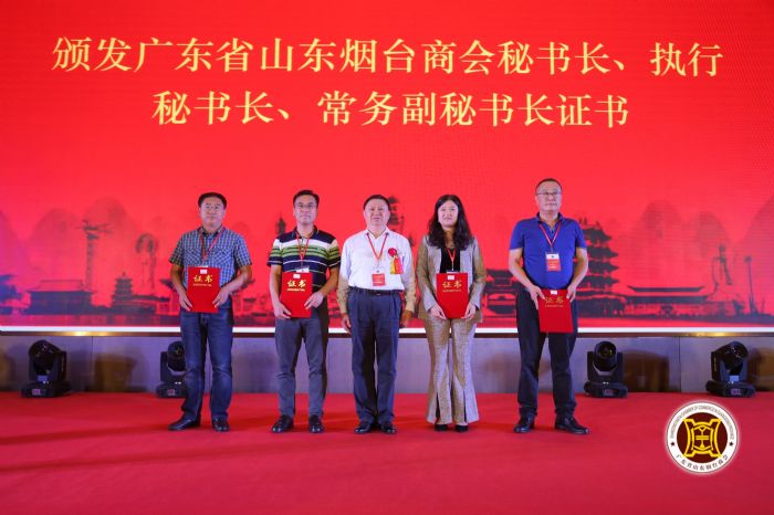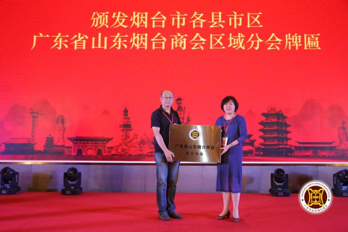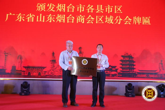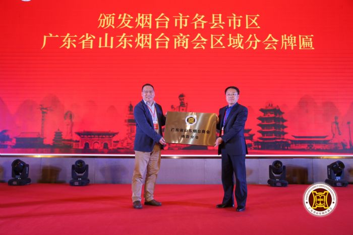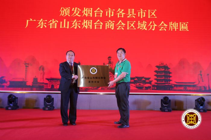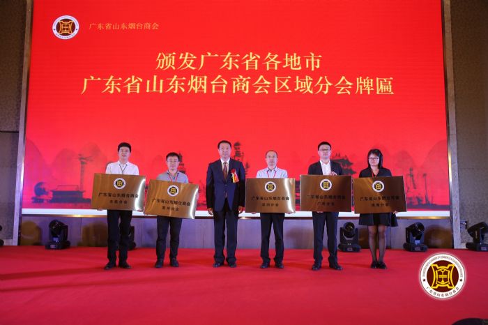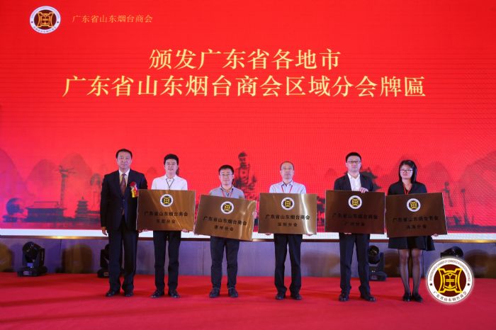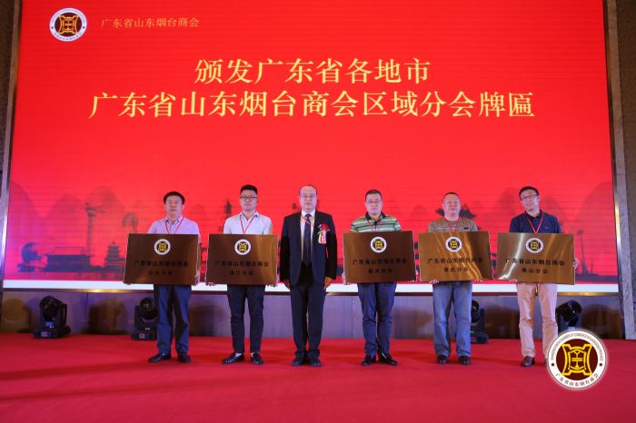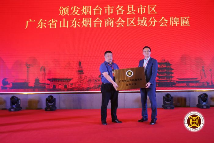 接下来的授牌仪式上,大会分别颁发了广东省各地市广东省山东烟台商会区域分会牌匾和烟台市各县市区广东省山东烟台商会区域分会牌匾,通过各分会组成的互通互联网络,真正壮大了广东省山东烟台商会商会的组织队伍。