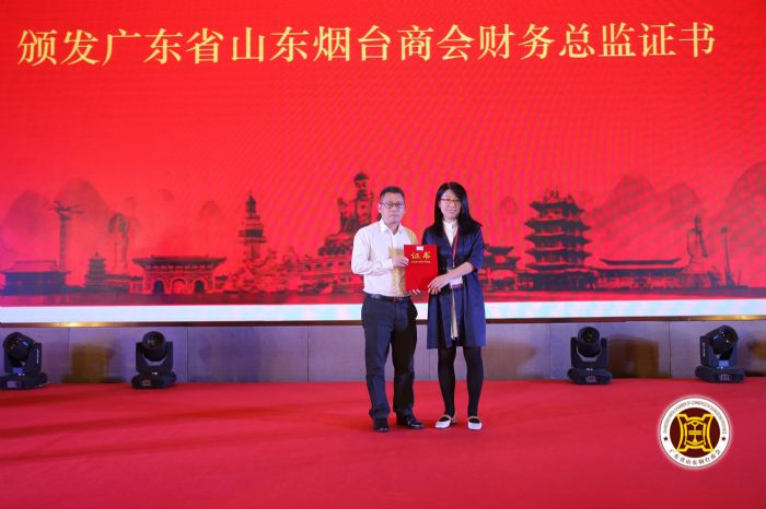 最后,广州市工商联党组副书记、副主席尹宏亮为广东省山东烟台商会财务总监刘微颁发证书。