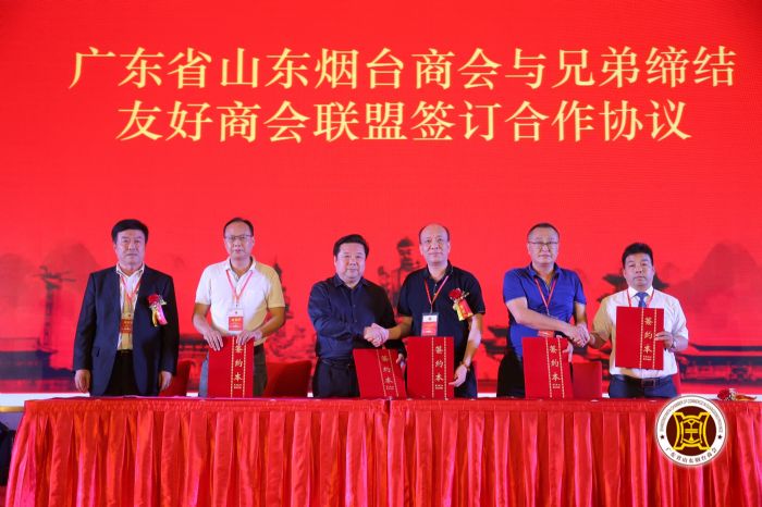 本着服务家乡经济发展,团结乡亲,搭建会员企业之间与政企之间友好交流与合作的桥梁纽带,实现共享共赢的初心,大会上,广东省山东烟台商会孙明高会长、于化空监事长、孙彦贵秘书长分别与广东省山东济南商会、广东省山东滨州商会友、广东省山东德州商会等兄弟商会正式签署缔结友好商会联盟合作协议。