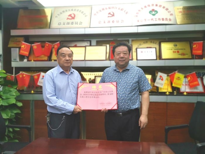 全国鲁商联盟会常务副会长、广东省山东商会常务副会长、广东省山东烟台商会会长、广东省山东商会深圳分会会长孙明高亲自为SOD生物工程分会领导班子颁发了聘书。特聘牛家义先生为广东省山东商会深圳分会高级顾问兼SOD生物工程分会名誉会长,王磊董事长为广东省山东商会深圳分会常务副会长兼SOD生物工程分会会长,袁艳荣为广东省山东商会深圳分会副会长兼SOD生物工程分会秘书长。