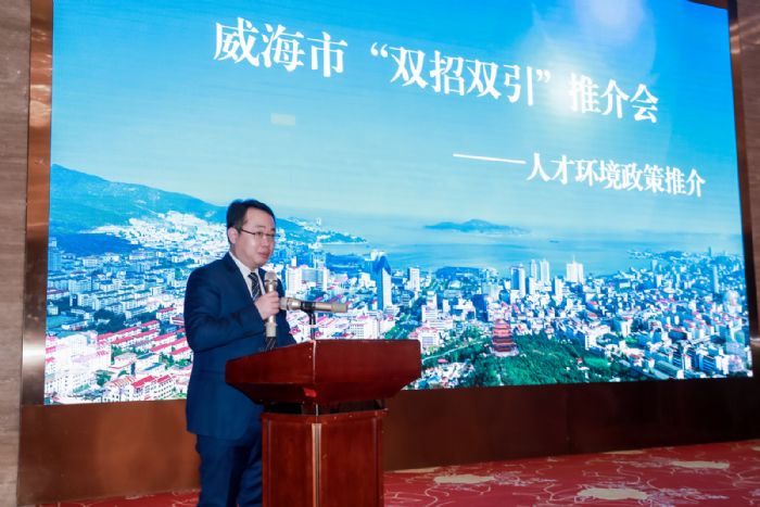 会上,播放了威海城市宣传片。威海市投资促进中心副主任方剑作“选择威海 共赢未来”推介。威海市人才开发中心主任徐海峰作威海人才环境政策介绍。