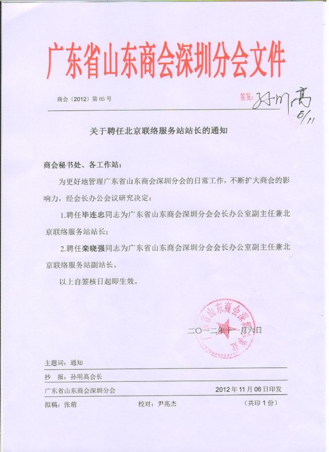 关于聘任北京联络服务站站长的通知