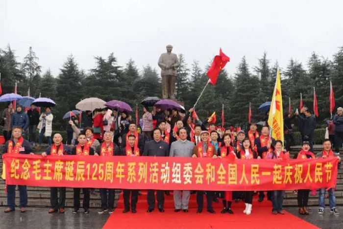 为期十五天的毛主席125诞辰系列文化盛典横跨粤港澳、湖南多地,在汪润田主席的主礼下如火如荼地进行着。首先从香港开始,途经澳门、湖南、广州等多个地方,最后在毛主席的故乡韶山推向了高潮。12月26日早上9点,全国红军企业家团先锋队抵达湖南韶山毛主席铜像广场,敬礼纪念毛主席125诞辰,30万同胞参加纪念毛主席125诞辰文艺大会。