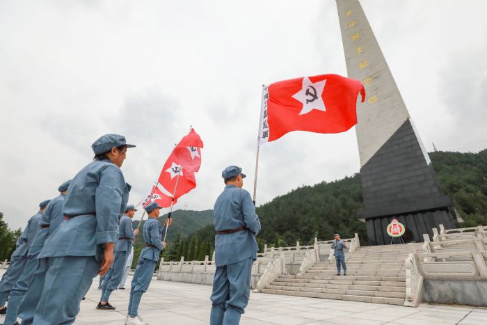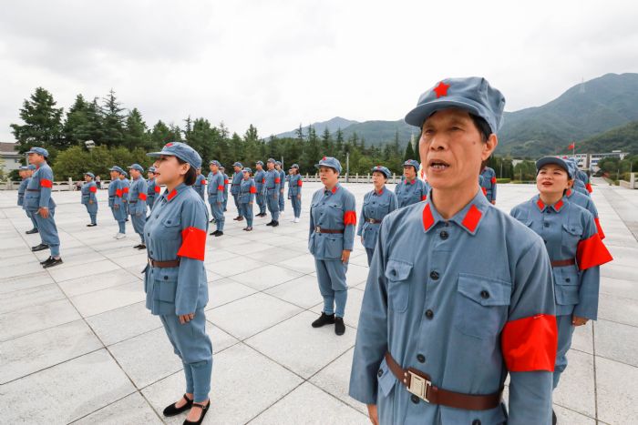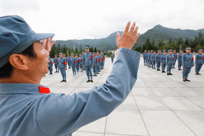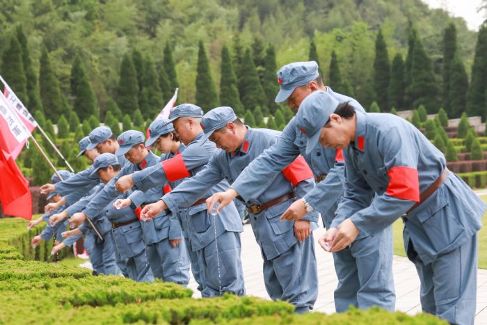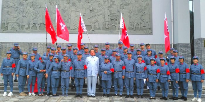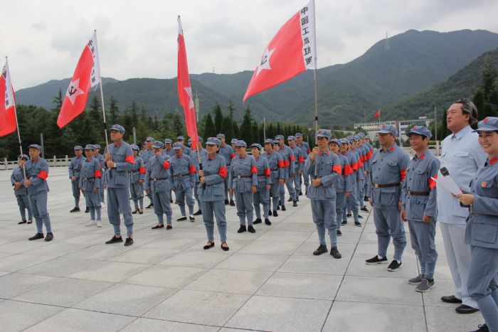 在国庆来临之际,由红色文化产业发展委员会宁波站筹办的红色文化洗礼活动,在浙江宁波市海曙区章水镇樟村革命烈士陵园圆满举行。粤港爱心义工联盟主席、广东省山东商会深圳分会副会长汪润田与55名身穿新四军军装的“军人”,在国歌声中开始了一天的红色之旅。