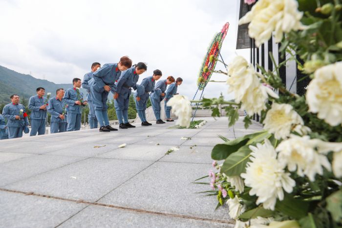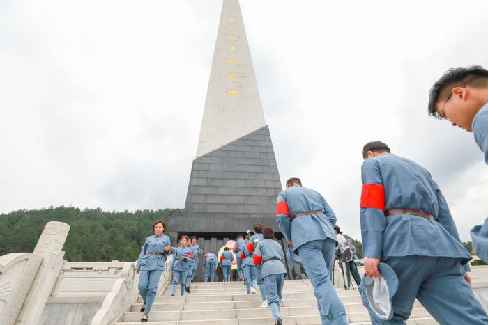 2020年9月26日上午,这支由宁波新四军历史研究会成员、中国人民解放军22军后代、宁波企业家、退役老兵以及来自河北、香港、宁波当地的志愿者们组成“红色之旅”团队,通过为烈士默哀、进献花圈、擦拭纪念碑、祭酒等仪式缅怀先烈。