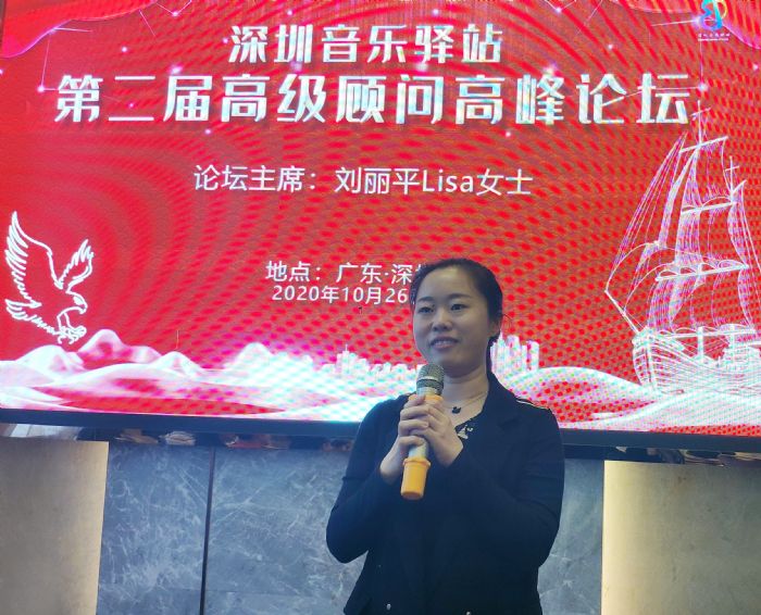 2020年10月26日,由深圳音乐驿站主办的第二届高级顾问高峰论坛在京基100名宴二楼举行。论坛以“深圳城市的核心价值,音乐产业的梦想舞台”为主题,探索音乐产业化发展模式以及深圳音乐驿站的可持续发展思路和战略规划。本次论坛由香港非物质文化遗产发展基金会副主席、香港《城市瞭望》杂志社社长、海峡两岸中国书画艺术交流协会会长、深圳音乐驿站高级顾问刘丽平女士(丽莎Lisa)主持。粤港爱心义工联盟主席、广东省山东商会深圳分会副会长汪润田应邀出席活动。