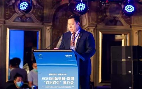鹏城万里行,垦邀天下商。2020年11月13日,山东垦利 © 深圳“双招双引”推介会在深圳成功举办。山东省东营市投资促进局副局长张晓慧,垦利区委常委、垦利经济开发区党工委书记、管委会主任刘军,垦利区投资促进发展服务中心主任刘斌出席推介会并致辞。民盟深圳市科技创新委员会副主任李银松,广东省山东商会深圳分会副会长兼供应链金融分会会长焦虹,广东省山东商会深圳分会副会长、深圳市山东东营商会会长周峰,深圳依蒙科技有限公司总裁黄伟等商协会代表及企业家们应邀出席大会。