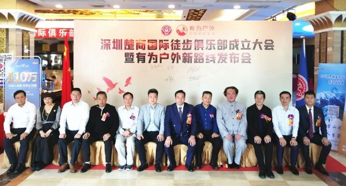2021年3月26日,深圳楚商国际徒步俱乐部成立大会暨有为户外新路线发布会在深圳龙华民治维也纳酒店圆满举行。深圳楚商国际徒步俱乐部创会会长、深圳有为户外文化传媒有限公司总裁钟凯,楚商国际会长杨智民,武汉大学楚商学院院长李琦,港澳台侨爱国公益团主席、广东省山东商会深圳分会副会长汪润田主席出席大会。