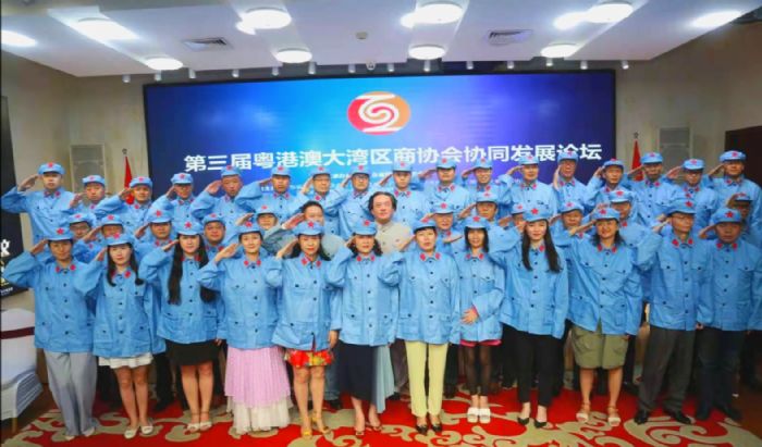 2021年7月23日,在第三届粤港澳大湾区商协会协同发展论坛暨商协会联盟签约仪式上,汪润田主席带领着来自粤港澳大湾区各商协会同仁及企业代表近百人齐声欢唱红歌,共同庆祝建党100周年和八一建军节。