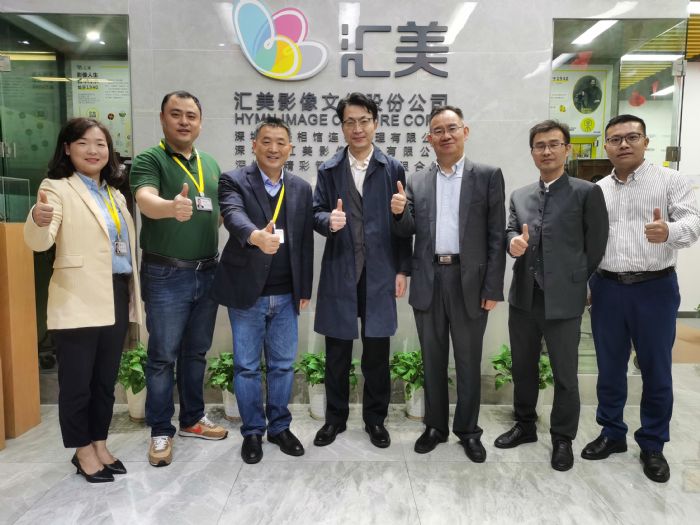 2022年3月5日上午,我商会常务副会长兼精准扶贫分会执行会长、深圳市山东青岛商会常务会长任诺寰一行应邀考察深圳市汇美影像文化股份有限公司(以下简称“汇美影像”)。汇美影像董事长祝乾松、副总裁冯光明、高级经理陈翠等热情接待了任诺寰常务副会长一行,并展开座谈交流。