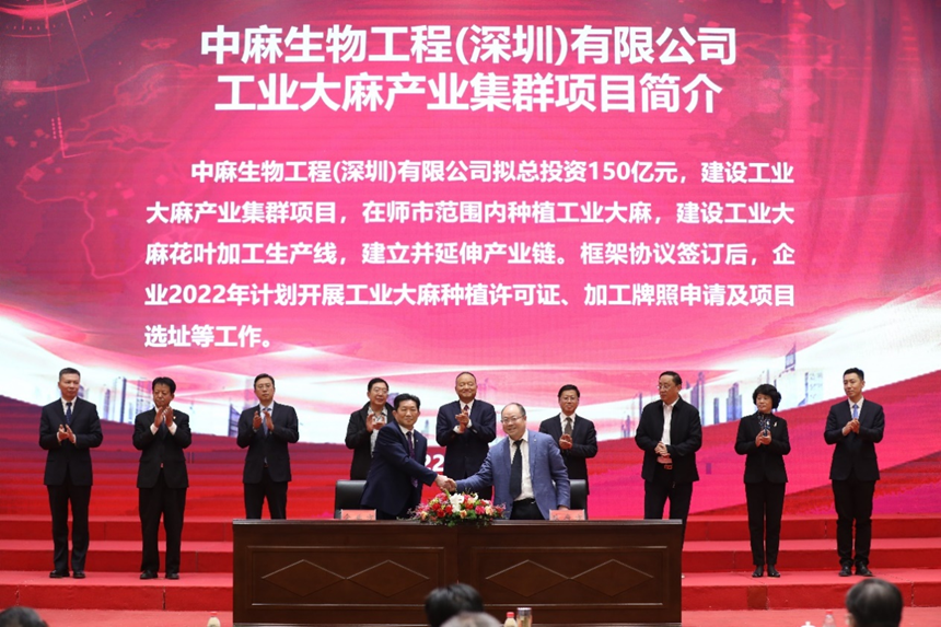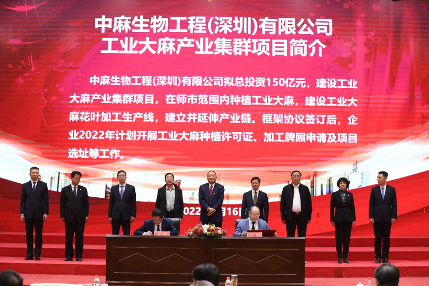为了更好地推动工业大业产业发展、造福人类,2022年3月16日,由我商会常务副会长、中麻生物工程(深圳)有限公司执行董事张江萍带队与新疆建设兵团一师正式签约。标志着中麻生物工程(深圳)有限公司新疆产业集群项目启动。