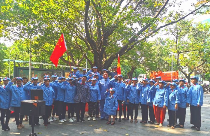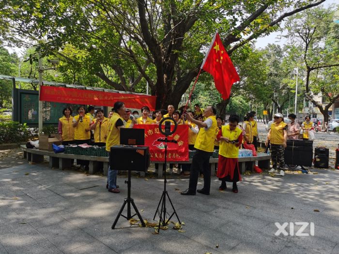 随后,惠州市红棉慈善会的一批志愿者们为现场的居民群众派发庆建军节纪念礼物,又有一批着穿红军装在公园周围进行环境美化,将公园周边的垃圾清理得干干净净,该举受到了现场居民群众的高度赞扬。
