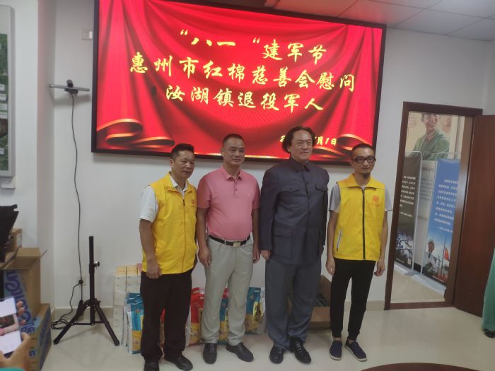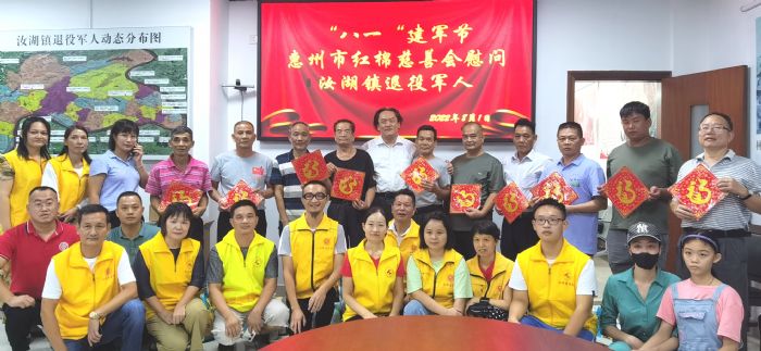 2022年8月1日上午,惠州市红棉慈善会开展“八一”建军节走访慰问惠城区汝湖镇退役军人活动。我商会副会长,粤港爱心义工联盟、国际潮商联谊会文化艺术团、惠州市红棉慈善会汪润田荣誉主席,惠州市红棉慈善会会长李鸿国、常务副会长李小艺与志愿者们一同来到惠城区汝湖镇退役军人服务站,致以节日的问候与祝福,充分体现社会对退役军人的关心关爱。