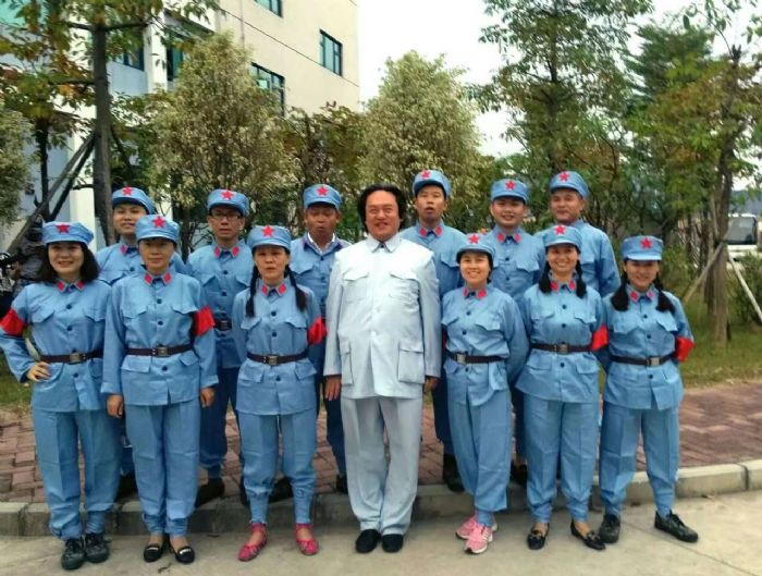 随后,大家穿上军装用高亢激昂的歌声齐唱《没有共产党就没有新中国》。用歌声表达对人民解放军的热爱和敬意,以及他们作为军转干部的情怀与感悟。