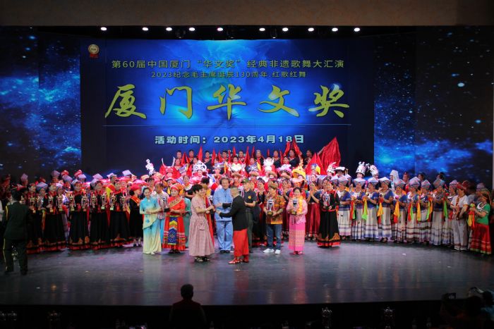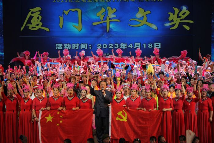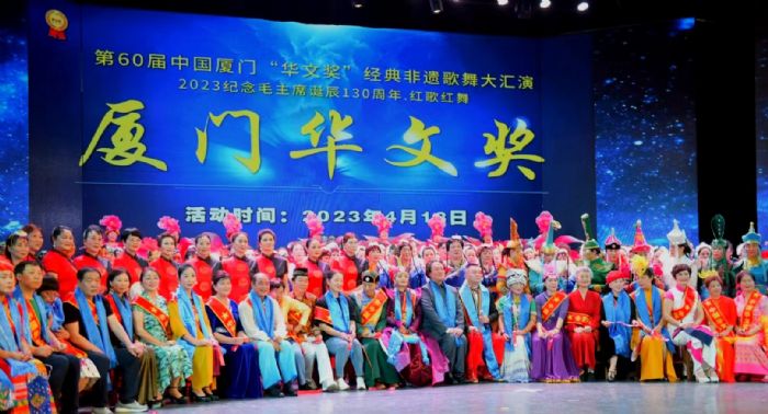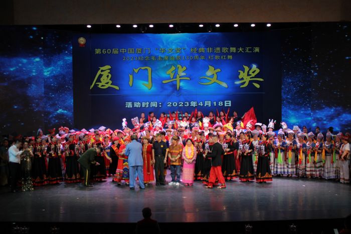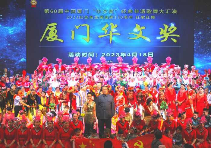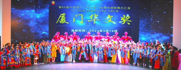 为纪念毛主席130诞辰,2023年4月18日,由中国文化艺术教育家联合会、中华民族文化艺术国际联合会、中国舞蹈家协会(香港)、中国老龄工作委员会(香港)、香港信用担保联合会主办,香港信用担保联合会支持的第60届“华文奖”经典非遗歌舞大汇演在厦门圆满举行。我商会副会长、粤港爱心义工联盟、国际潮商联谊会文化艺术团汪润田主席主礼此次活动。近千名艺术家为祖国奉献近六十个精彩各带民族特色的演出,表达热爱党、热爱祖国、热爱人民的盛世豪情。