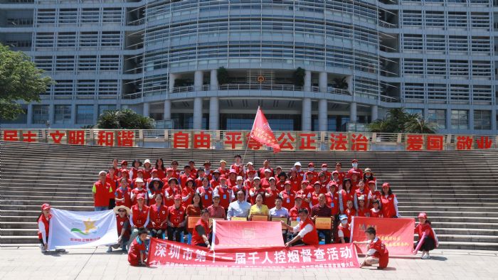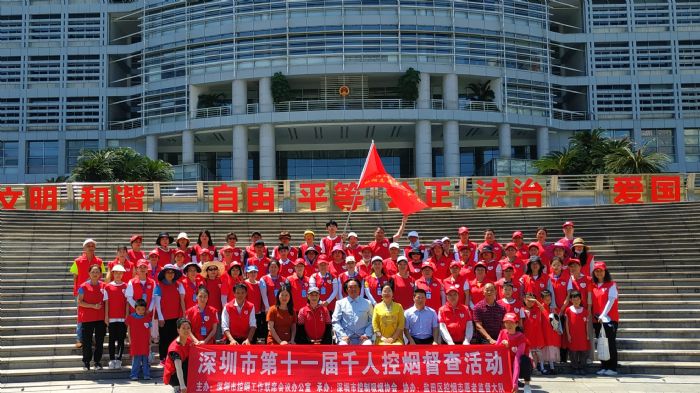 2023年5月28日,在第36个世界无烟日来临之际,深圳市第十一届千人控烟督查活动盐田专场正式启动。活动当天,盐田区控烟志愿者监督大队百余名控烟志愿者在盐田区政府广场集合,向市民发出禁烟倡议——“别抽啦!戒了吧!”