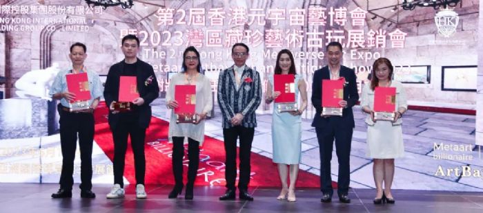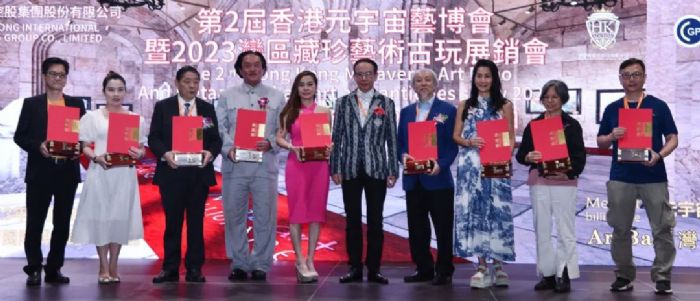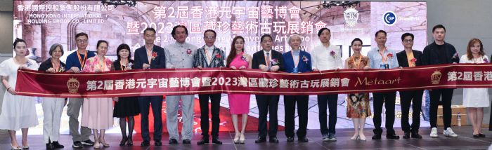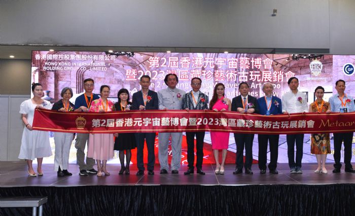 由香港国际控股集团股份有限公司主办的“第二届中国香港元宇宙艺博会暨2023湾区藏珍艺术古玩展销会”于2023年6月7日下午四时,在香港亚洲国际博览馆3号国际馆隆重举办开幕仪式。主办方携协办方(荷兰)格兰披治金融科技集团、明画廊、香港当代美术馆、元宇宙交易平台营运商Metaart与广大藏友欢聚一堂,共庆盛事。活动感谢大中华民藏鉴赏协会、香港中华邮学会的鼎力支持。香港商务及经济发展局副局长陈百里博士JP专程来支持活动。我商会副会长、粤港爱心义工联盟主席、香港信用担保联合会主席、广东省惠州市红棉慈善会荣誉主席、深圳市聚爱会荣誉会长、世界五邑商会荣誉主席、国际潮商联谊会文化主席汪润田先生主礼活动。
