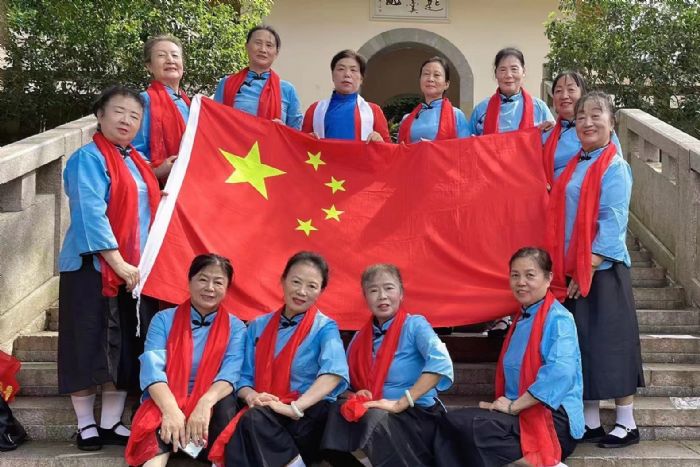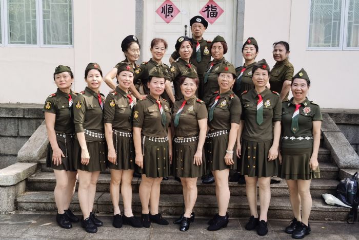 大队在列队时,由汪润田主席带领大家高唱国歌《义勇军进行曲》,红歌《没有共产党就没有新中国》《四渡赤水》,众人将对祖国的赤诚之心和对军人的仰慕之情倾注于歌声中,现场氛围非常热烈。