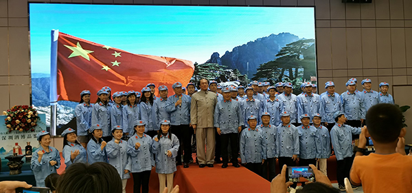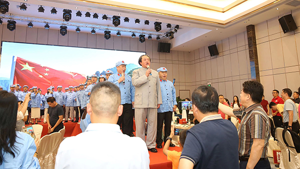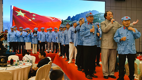 为了表示大家不忘初心,传承长征红军精神,汪润田主席特意中国香港带上近100套红军装赞助大会,并和艾博团长表示,长征精神是具有原创意义的民族精神,是当代中国的民族精神,是我们党之魂、军之魂、民族之魂,在革命战争年代的积淀和凸现,是建设中国特色社会主义新长征的不竭动力,是推动中华民族伟大复兴的精神资源。随后,汪润田主席带领大家高唱国歌,合唱《团结就是力量》。