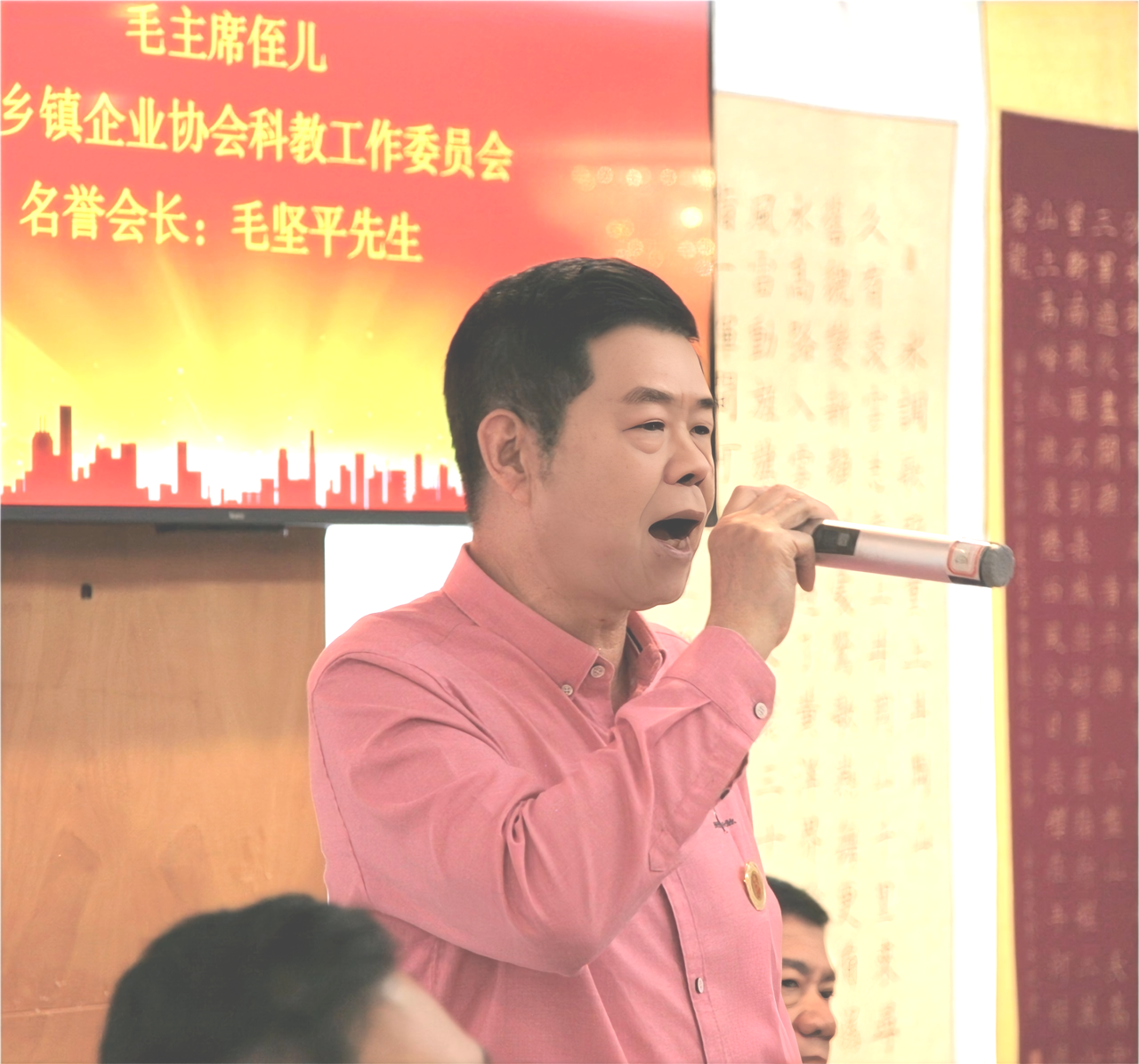毛家代表、毛主席侄儿、中国乡镇企业协会科教委员会名誉会长毛坚平先生对徐秘书长及所有为毛主席文化思想的传承努力付出的各界人士表示衷心感谢,并对来宾的致以诚挚祝福。