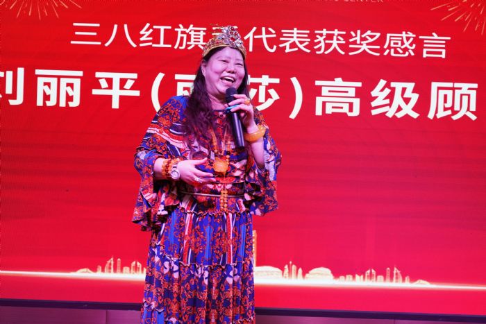荣获“三八”红旗手代表,刘丽萍女士代表受表彰人员讲话。她说:借此机会,我代表今天被深圳市文华音乐中心授予‘三八’红旗手的各位女同胞向中心全体同仁和刘代禄理事长表示衷心感谢和崇高的敬意!深圳市文华音乐中心的各位巾帼女神、各位来自百姓舞台的歌唱家、艺术家,特别是荣获今天表彰的姐妹们,要以此次庆祝活动为动力,以刘代禄理事长提出的“五个研究”为指导,感恩时代、感恩平台,不负韶华。