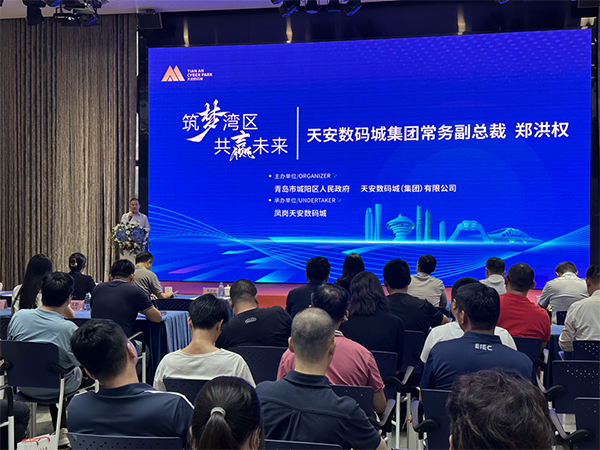 作为城阳区两家主导产业链链主企业的代表,物元半导体行政副总监于清源和鹏辉能源总裁办主任张天来先后进行了推介,介绍了自身企业的技术优势和应用场景,向大家解读了城阳区产业链的优势和机遇。青岛天安数码城集团对青岛天安科创城园区进行了园区推介,重点介绍了青岛天安科创城的优质区位、完善配套和入园企业。