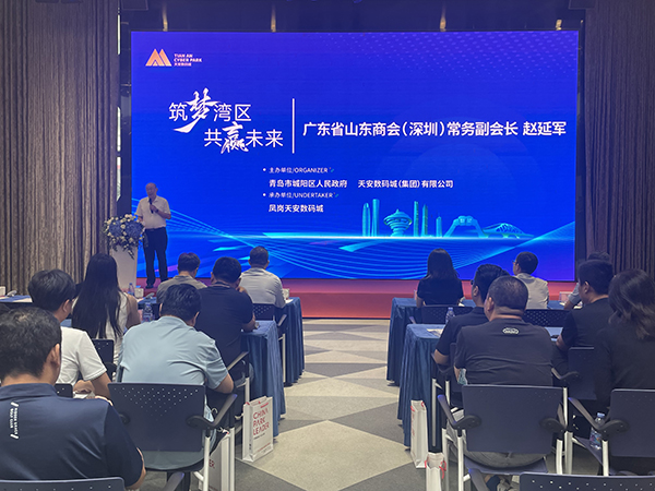 2024年8月21日,由青岛市城阳区人民政府、天安数码城集团联合举办的2024青岛市城阳区粤港澳大湾区招商专场推介会在东莞凤岗天安数码城顺利举行。城阳区借力天安数码城集团这一城市合伙人,与来自两地的百余家企业代表汇聚一堂,共商合作机遇,共谋发展大计。广东省山东商会(深圳)副会长赵延军应邀出席并上台发言。广东省山东商会(深圳)常务副会长、深圳市山东青岛商会执行会长兼秘书长许德学,广东省山东商会(深圳)副会长、深圳市领航通移动视讯有限公司总经理刘晓磊,广东省山东商会(深圳)副会长、集一控股有限公司总经理迟世敏应邀出席活动。