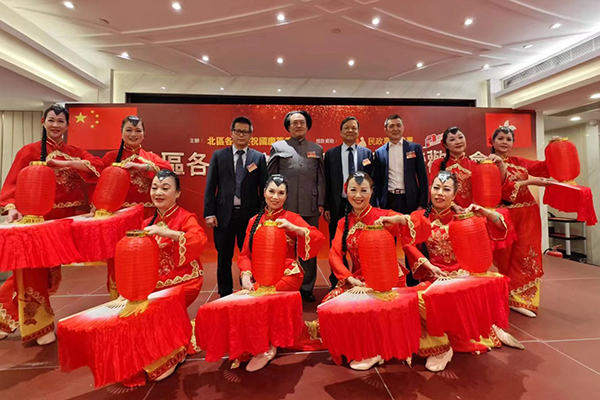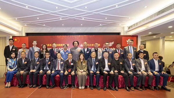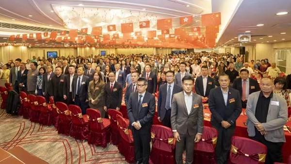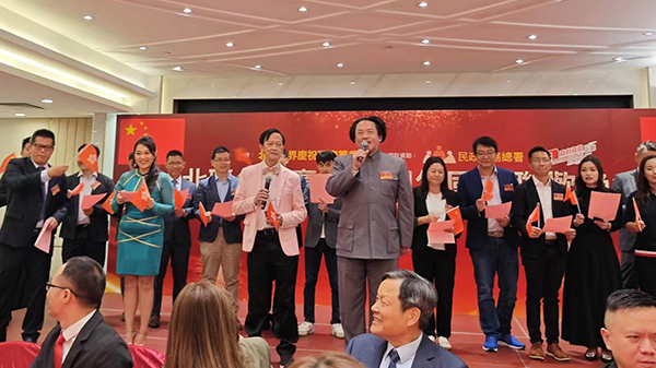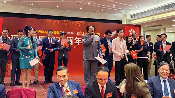 随后,汪润田主席带领台上的区议员和全体500位嘉宾共同高唱《歌唱祖国》,歌声嘹亮,激情四溢,表达了大湾区同胞对祖国国庆75周年的深深祝福和美好愿景。